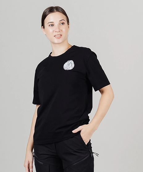 3. Стильный дизайн. Свободный крой и классический круглый вырез горловины делают эту футболку универсальным элементом гардероба, который легко сочетается с различными стилями одежды